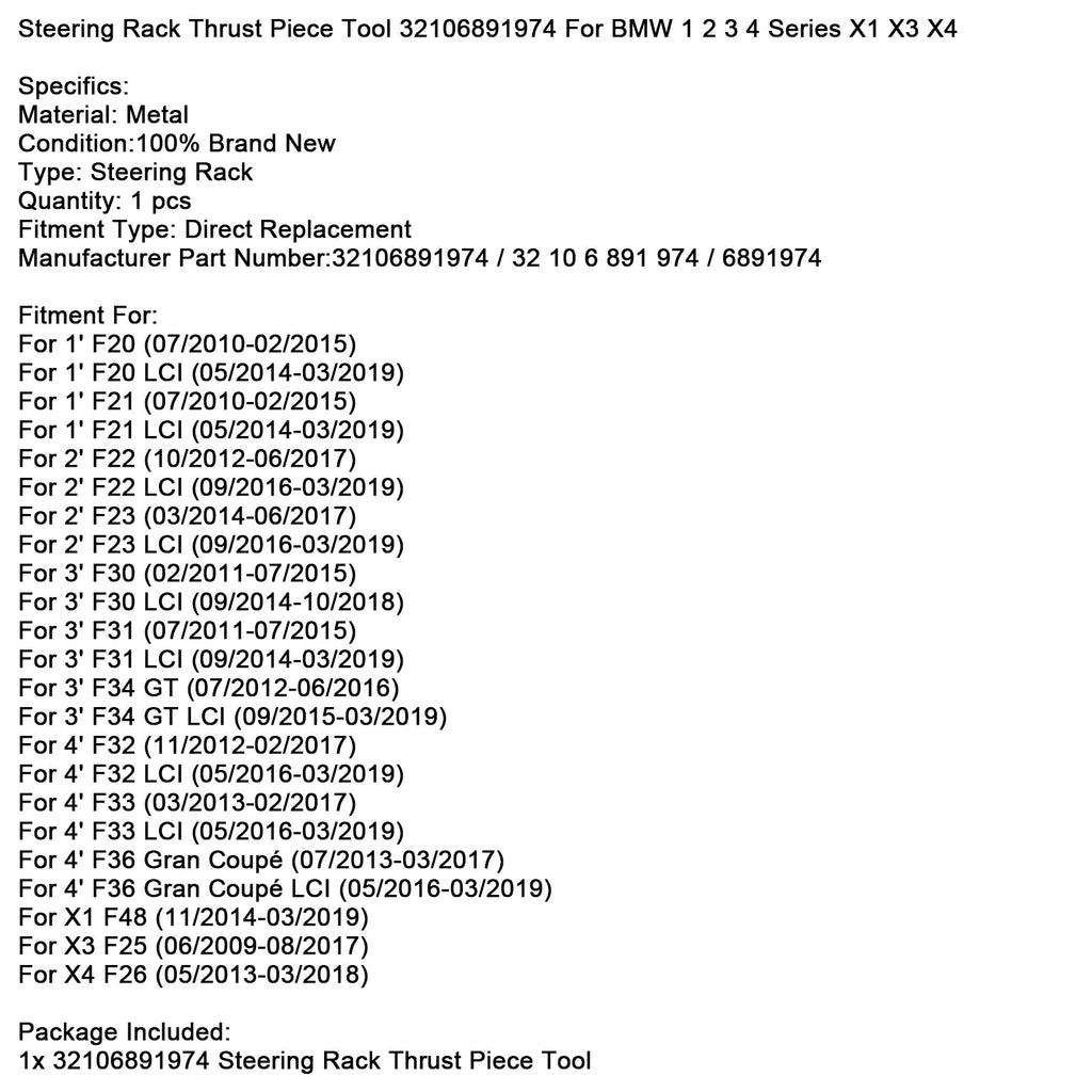 Lenkung Rack Druckstück Werkzeug 32106891974 Für BMW 1 2 3 4 Serie X1 X3 X4