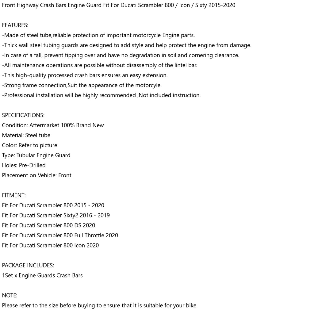 Front Highway Crash Bars Motorschutz Passend für Ducati Scrambler 800 / Icon / Sixty 2015-2020