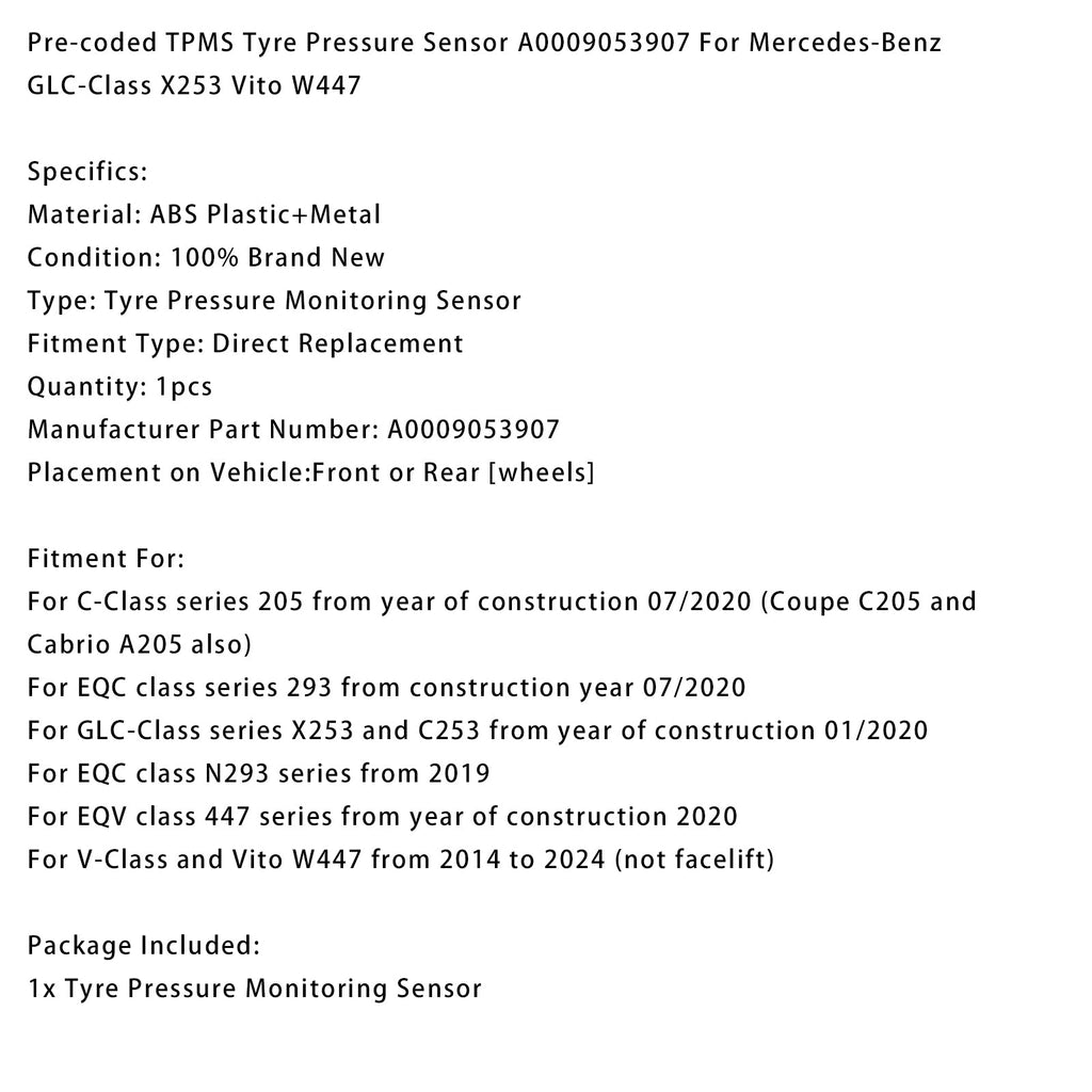 Vorcodierter TPMS-Reifendrucksensor A0009053907 für Mercedes-Benz GLC-Klasse X253 Vito W447