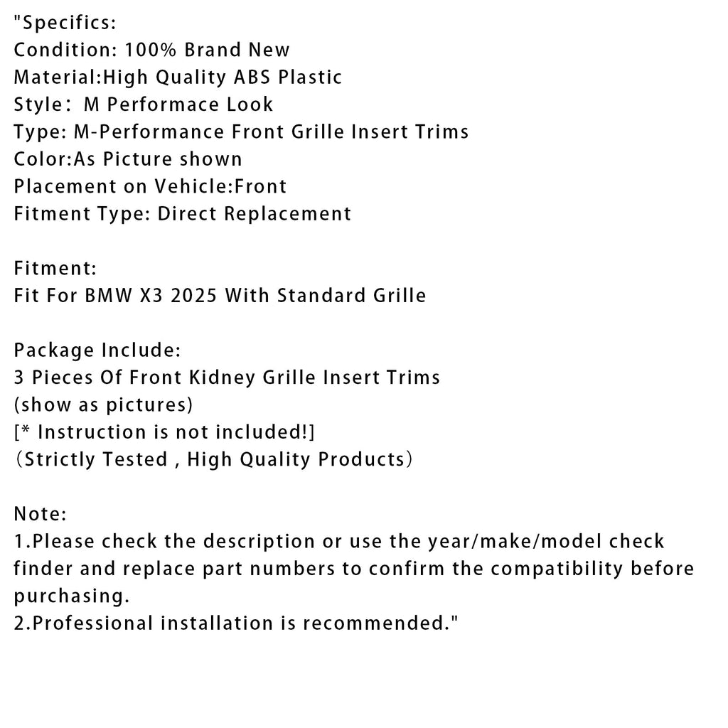 Fit For BMW X3 2025 With Standard Grille