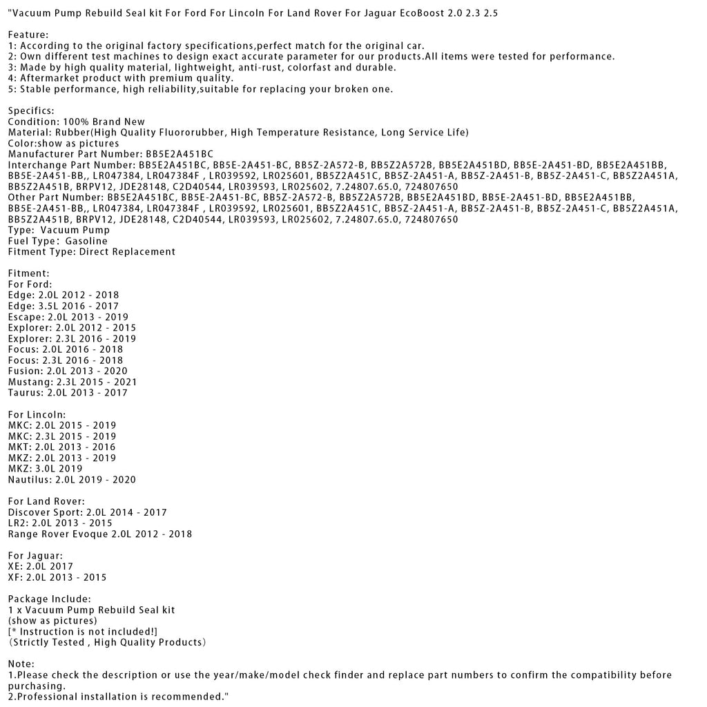 Tyhjiöpumpun tiivistesarja Fordille, Lincolnille, Land Roverille ja Jaguarille EcoBoost 2.0 2.3 2.5