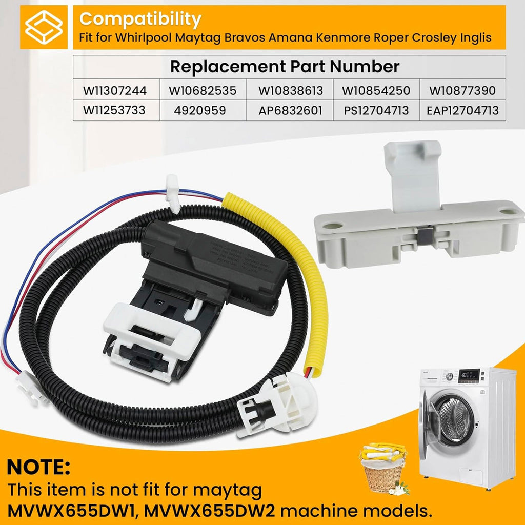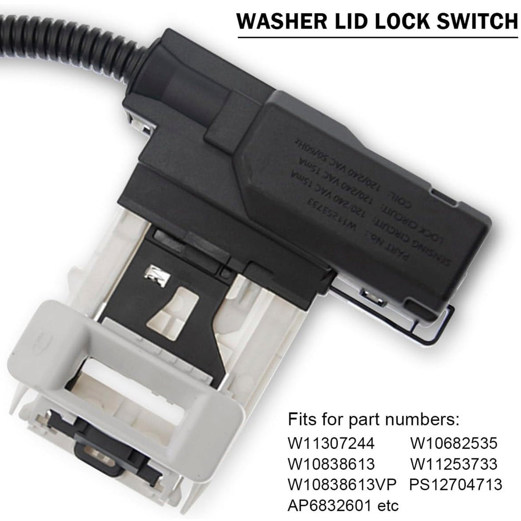 【Yhteensopivuus】W11307244 W10682535 Pesukoneen kannen lukko, sopii malliin NTW4516FW0 NTW4516FW3 PainoW4655JW0 PainoW4816FW2 PainoW4955HW1 PainoW5000DW1 PainoW5000DW2 PainoW5000DW3 PainoW5005KW0 MVWC565FW1 jne.
