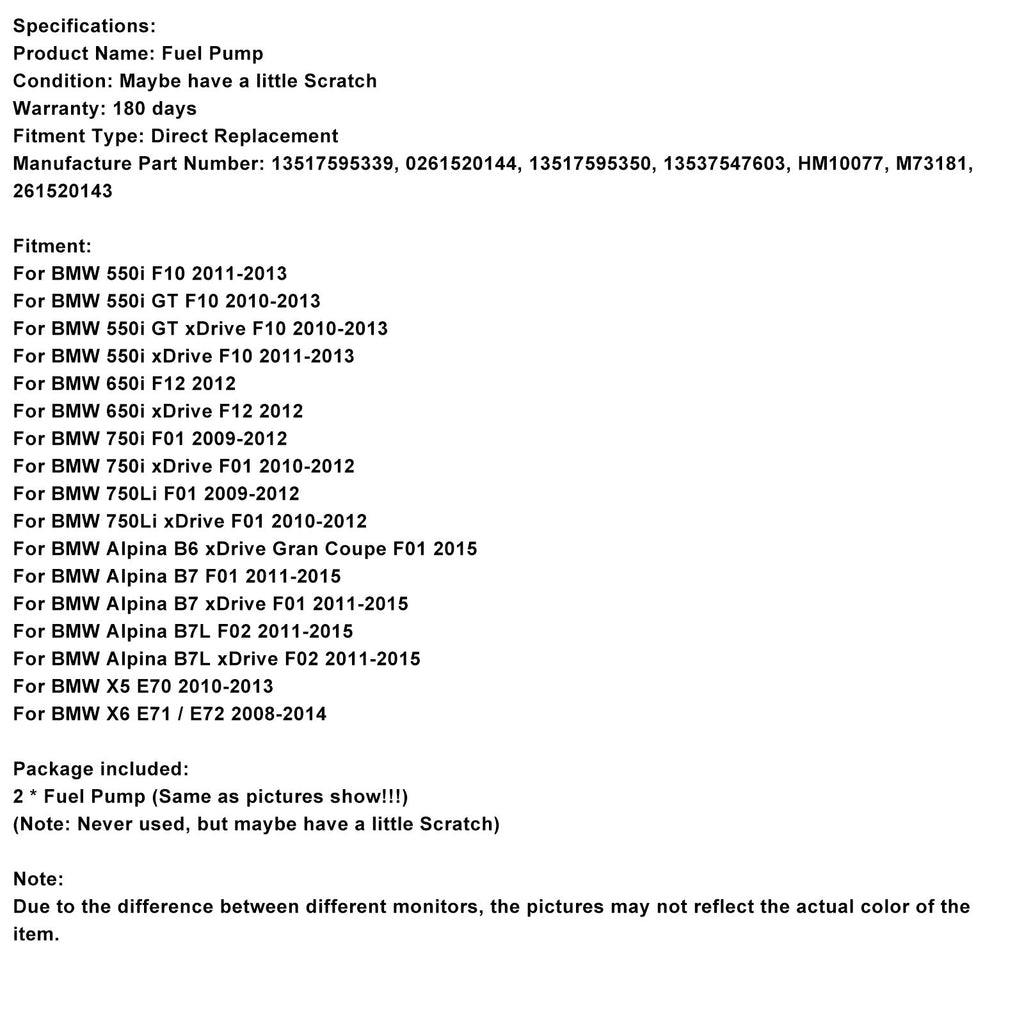 2 Stück Hochdruck-Kraftstoffpumpe 13517595339 Passend für BMW F01 F10 E70 X5 E70 V8 4.4L