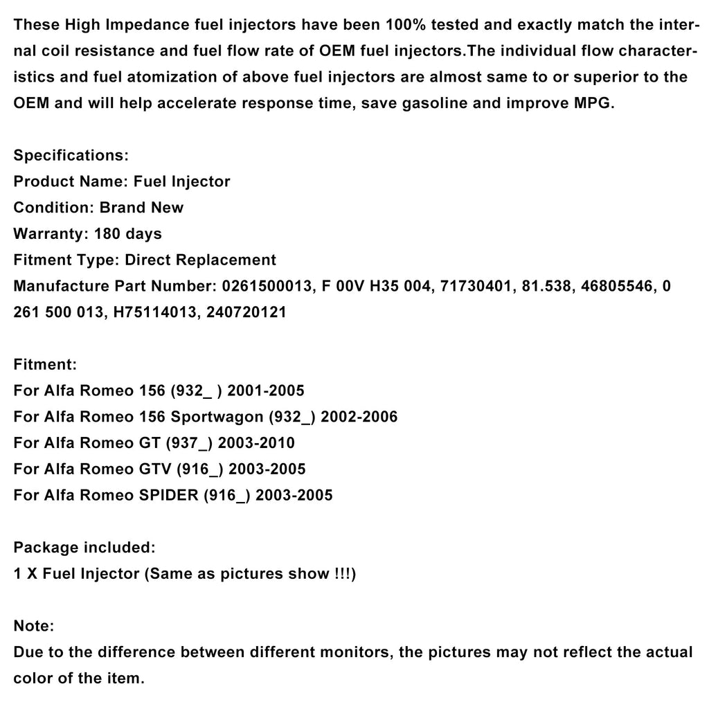 Disse høyimpedansdrivstoffinjektorene er 100 % testet og samsvarer nøyaktig med den interne spolemotstanden og drivstoffstrømningshastigheten til OEM-drivstoffinjektorene. De individuelle strømningsegenskapene og drivstoffforstøvningen til drivstoffinjektorene ovenfor er nesten like eller til og med bedre enn OEM-ens, og bidrar til å redusere responstiden, spare bensin og forbedre drivstofføkonomien.