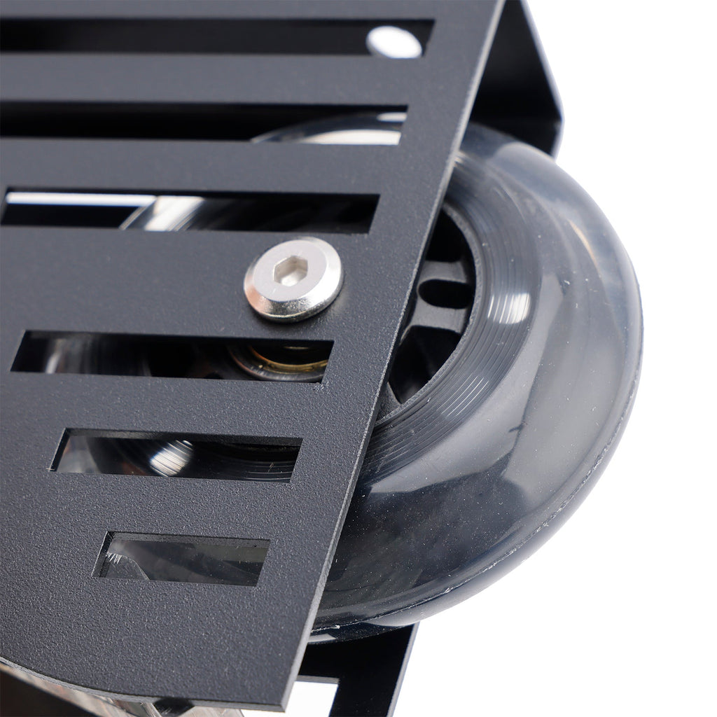 【Sikkerhetshjul】Det svarte maskinvaresettet til bibliotekstigen inneholder hjul, delt inn i øvre og nedre hjul. De øvre rullene er plassert mellom skinnene og sikrer stille og jevn glidning, mens de to små rullene reduserer risikoen for avsporing og fall. De nedre hjulene har polyuretanhjul av høy kvalitet med stållagerkjerner og bremser, noe som sikrer robust slitestyrke og holdbarhet. Bremsen kan låses når stigen står oppreist, noe som øker sikkerheten.