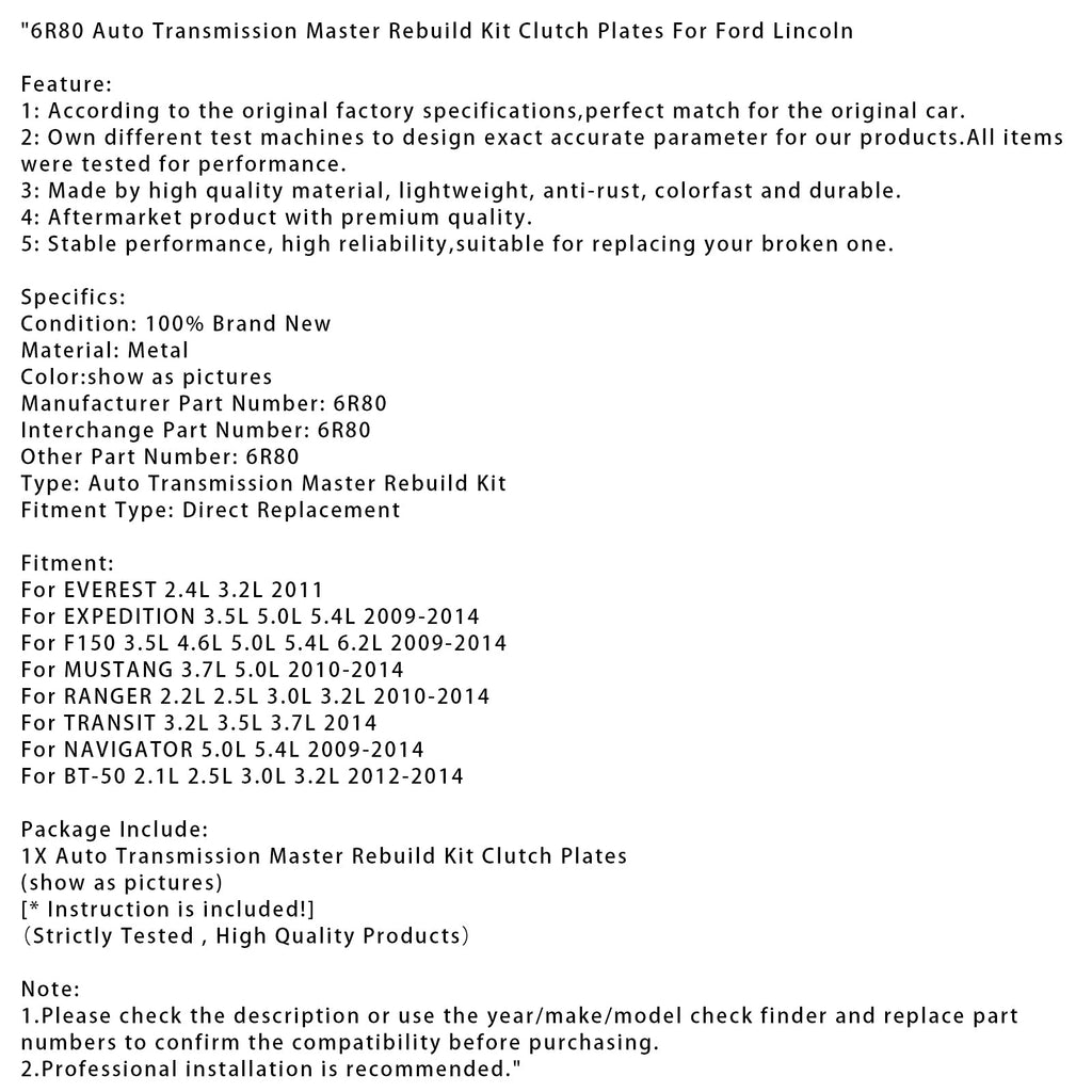 6R80 Auto Transmission Master Rebuild Kit Clutch Plates For Ford Lincoln