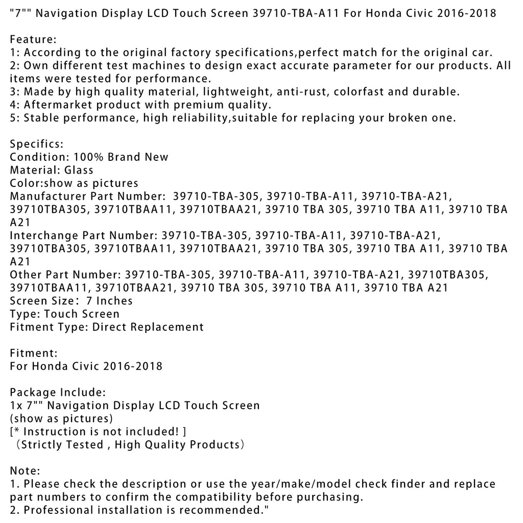 7" navigasjonsskjerm LCD-berøringsskjerm 39710-TBA-A11 for Honda Civic 2016-2018