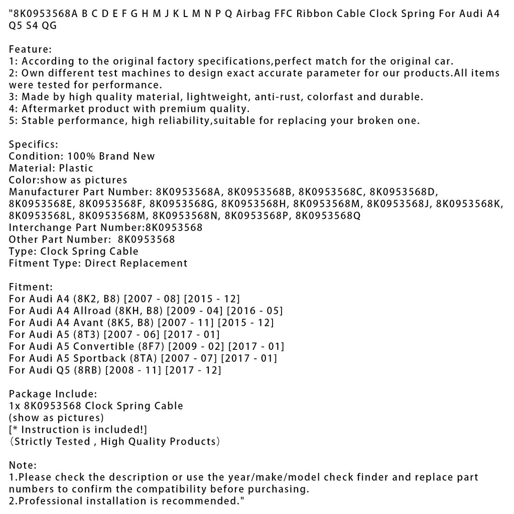 8K0953568A BCDEFGHMJKLMNPQ Airbag FFC Band Kabel Uhr Frühling Für Audi A4 Q5 S4 QG