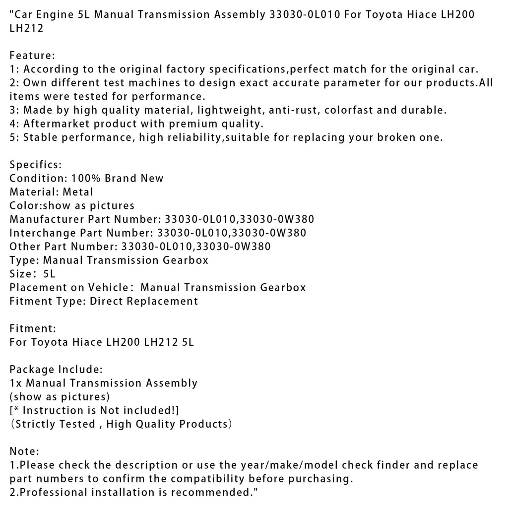 Auto Motor 5L Manuelle Übertragung Montage 33030-0L010 Für Toyota Hiace LH200 LH212