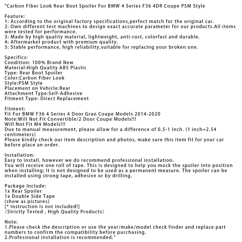 Carbon Fiber Look Hinten Boot Spoiler Für BMW 4 Serie F36 4DR Coupe PSM Stil