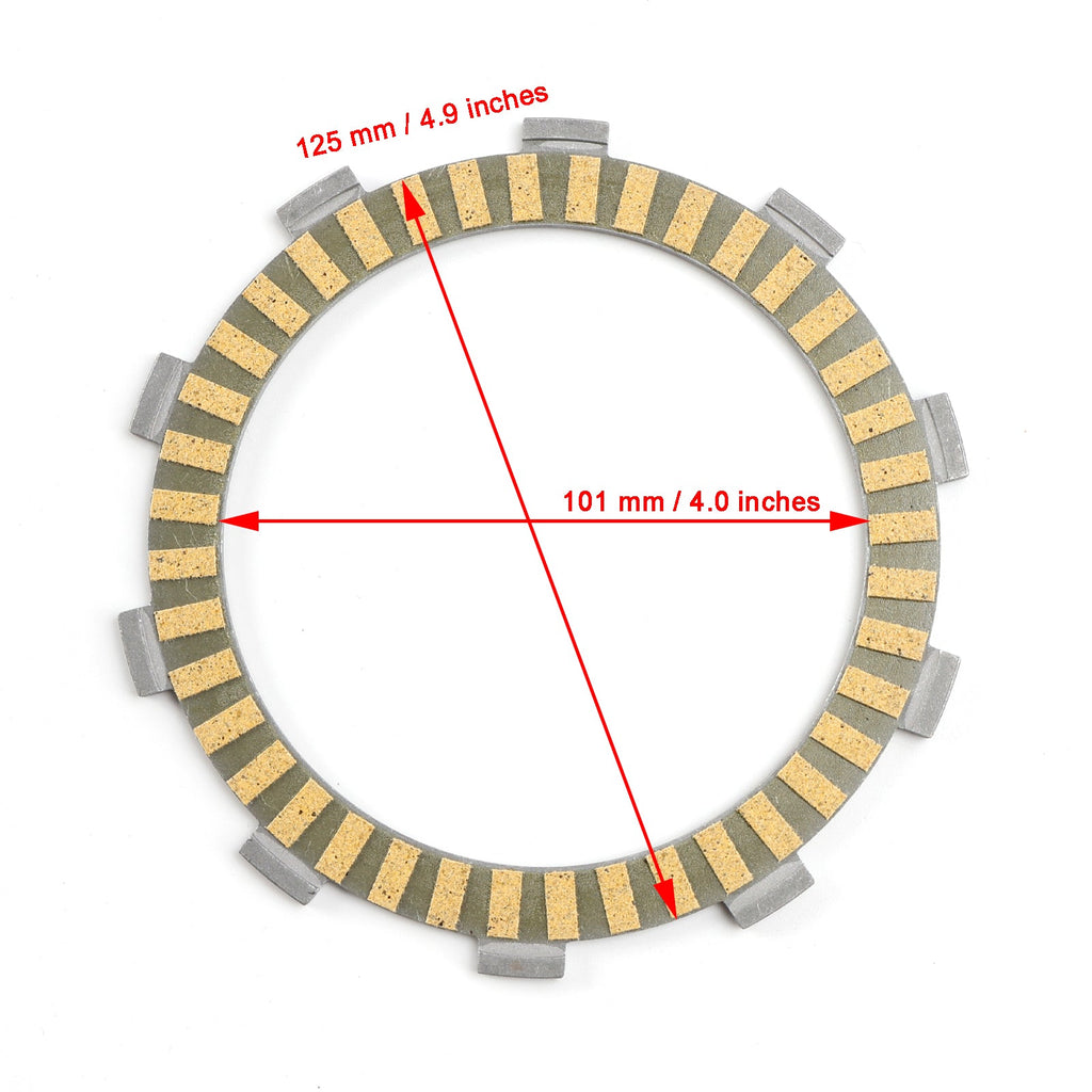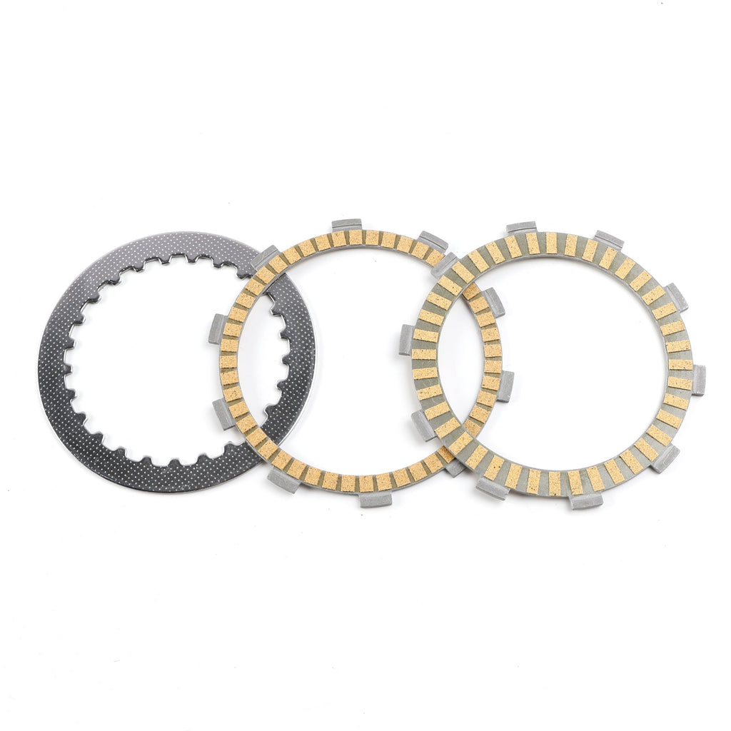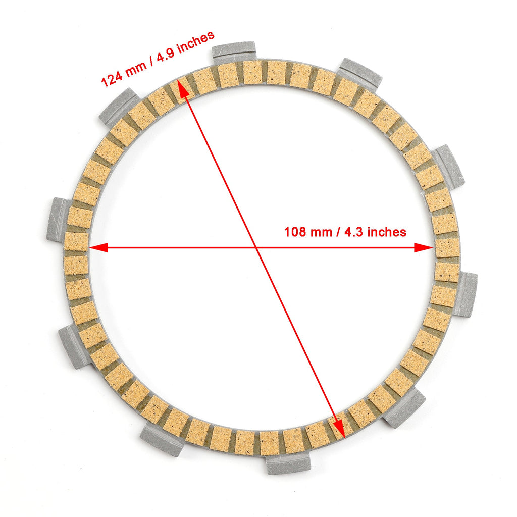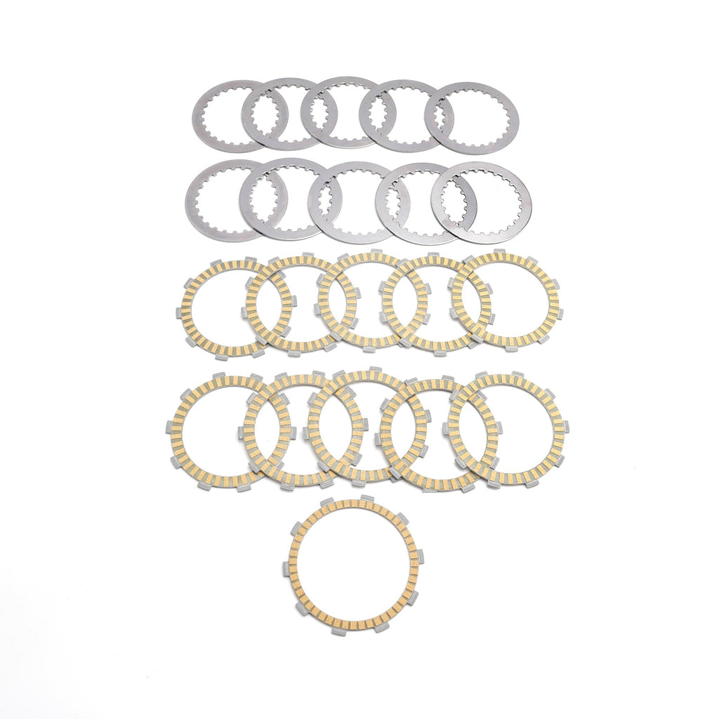Settet inneholder 11 friksjonsplater på herdede jernkjerner og 10 drivplater av herdede jern.