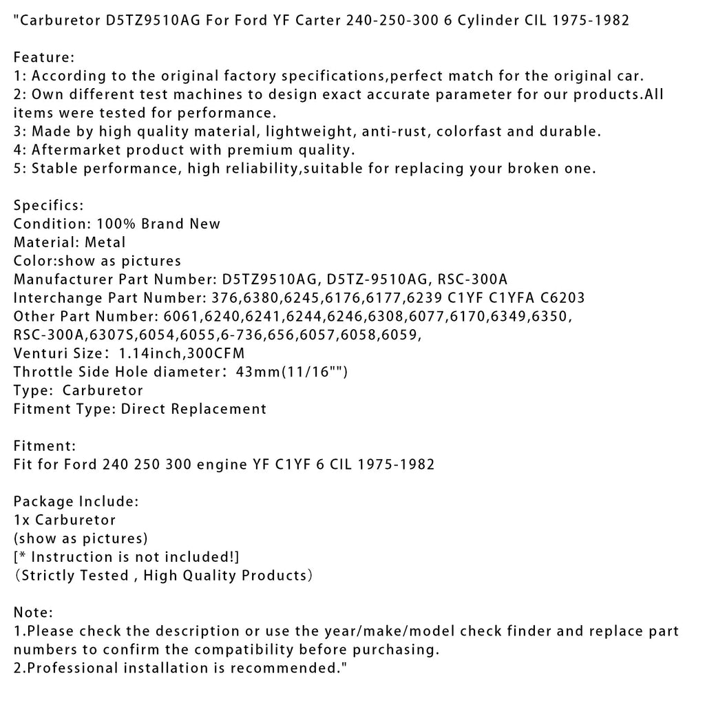 Forgasser D5TZ9510AG For Ford YF Carter 240-250-300 6-sylindret CIL 1975-1982