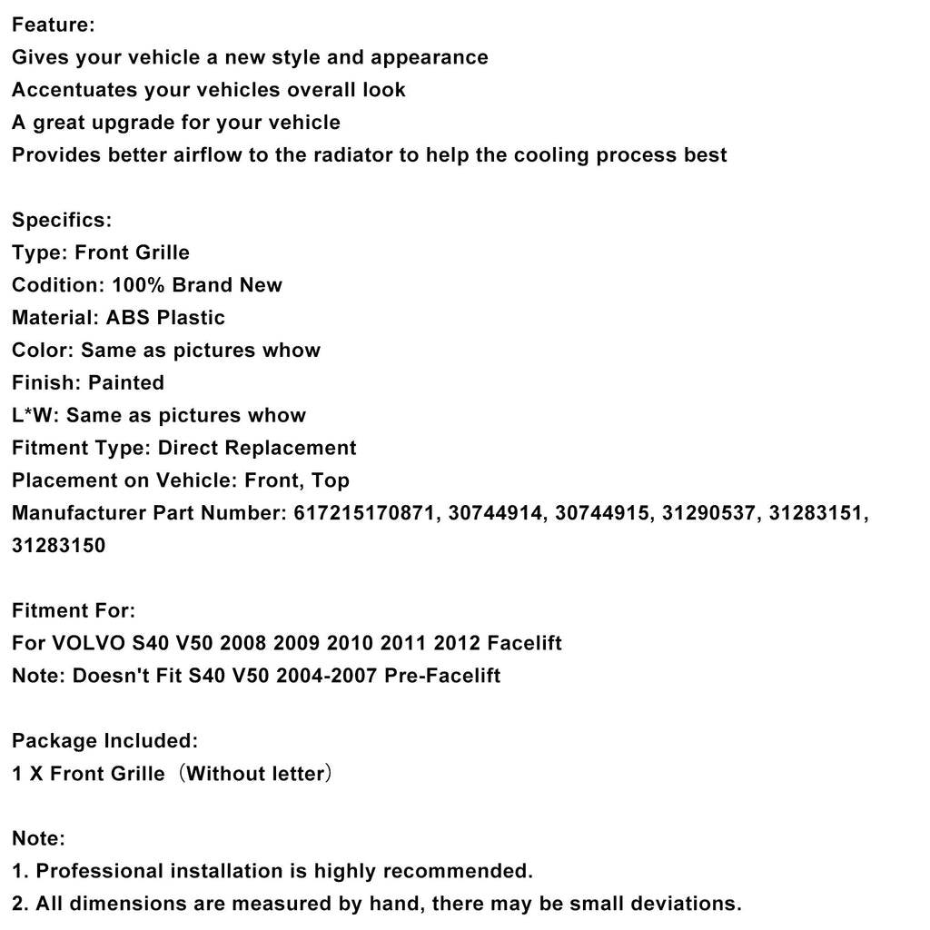 Front Bumper Honeycomb Grille Grill Fit for Volvo S40 V50 Gloss Black 2008-2012