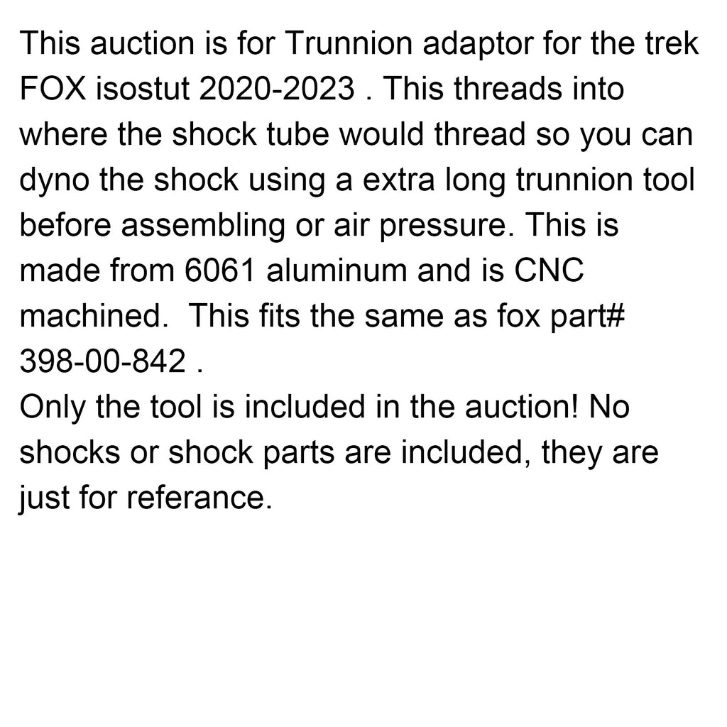 Denne auksjonen er for en pin-adapter til Trek FOX Isostut 2020-2023. Denne skrus inn der spjeldrøret skrus inn. Dette lar deg teste spjeldet på testbenken med et ekstra langt pinneverktøy før montering eller trykkoppbygging. Adapteren er laget av 6061 aluminium og er CNC-maskinert. Den passer til Fox delenummer. 398-00-842.