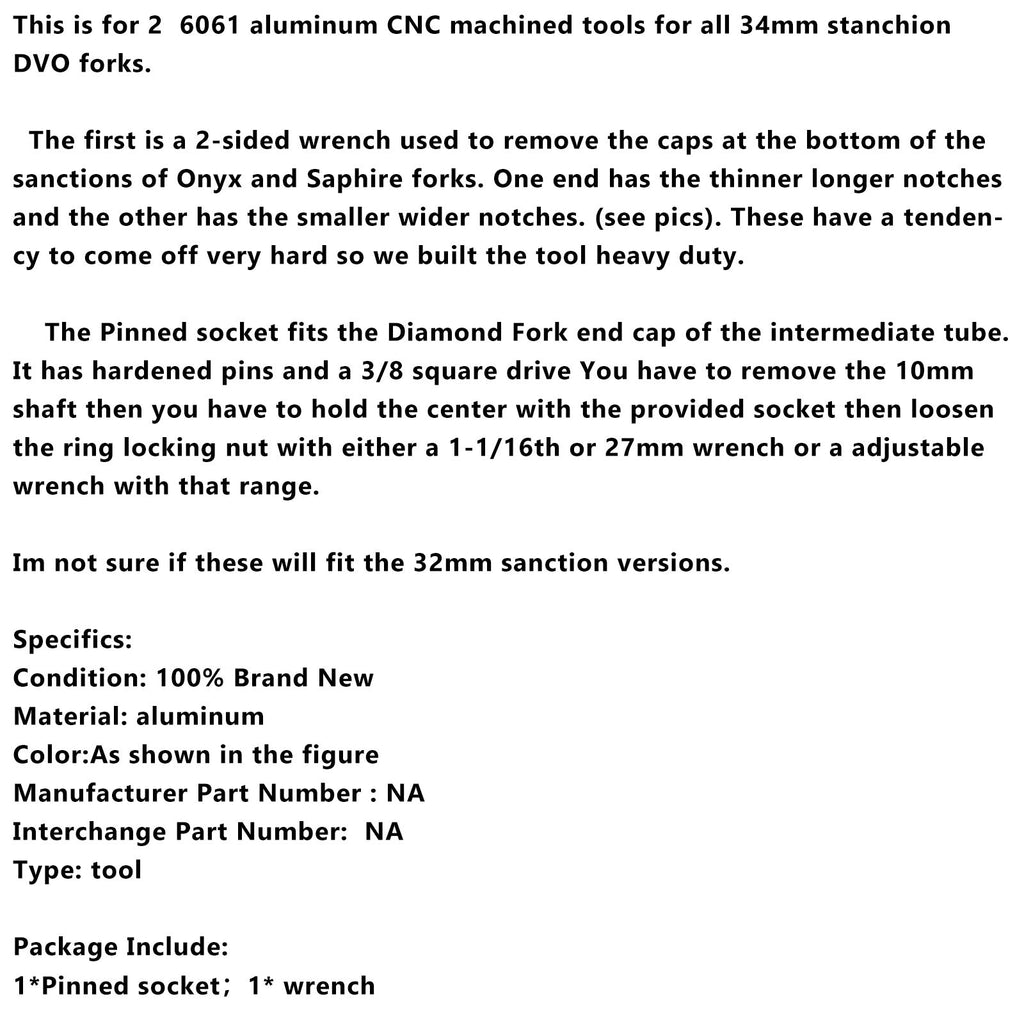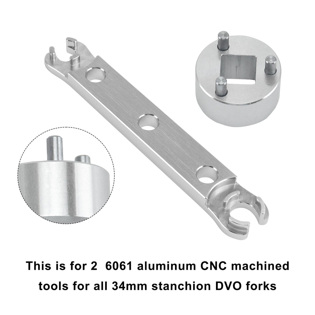 Dies ist für 2 CNC-gefräste Werkzeuge aus 6061-Aluminium für alle DVO-Gabeln mit 34-mm-Standrohren.