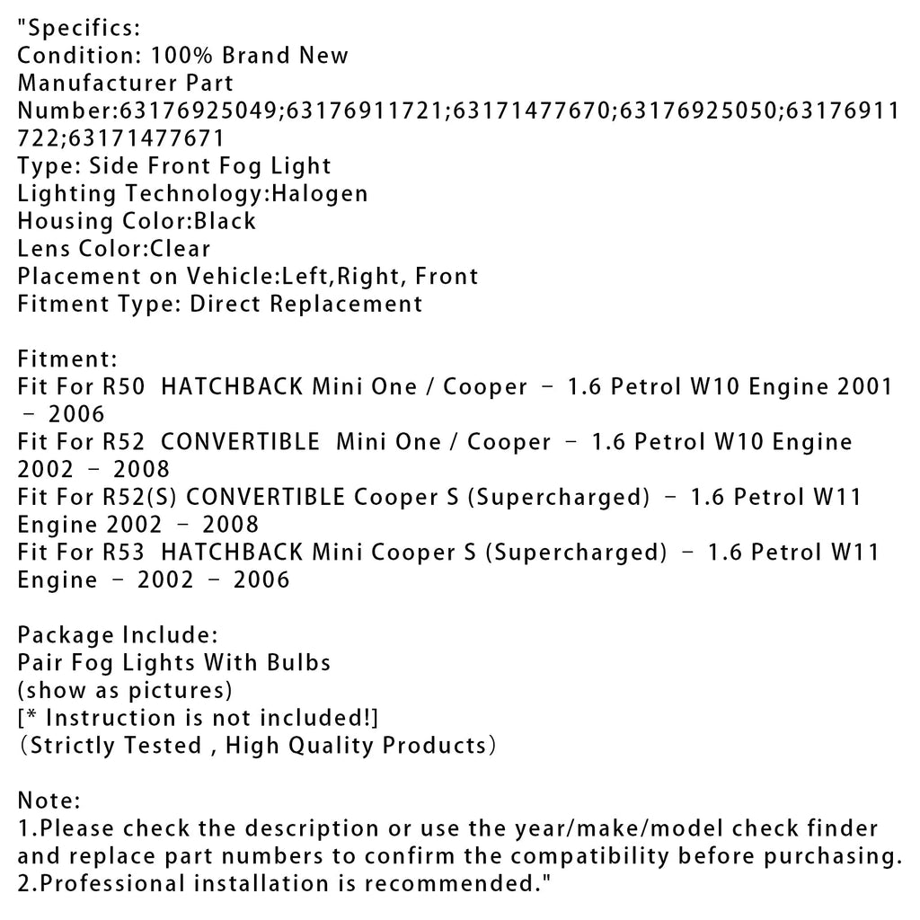Paar Frontstoßstange Nebelscheinwerfer für Mini Cooper One R50 R52 R53 63176925050