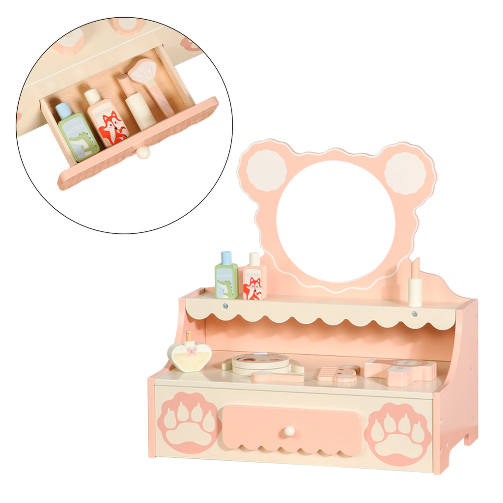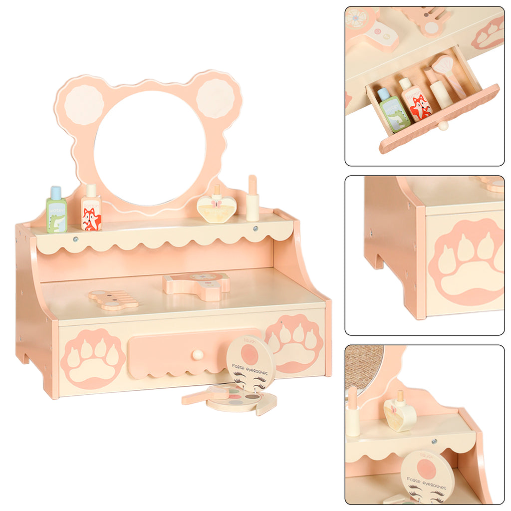Dieser hübsche Schminktisch ermöglicht es Kindern, in die Rolle eines Stars, Friseurs, Kosmetikers oder Make-up-Artists zu schlüpfen und fördert ihre Vorstellungskraft und Kreativität. Er ist ein perfektes Geschenk für ein 3-jähriges Mädchen und ideal als Weihnachtsgeschenk geeignet.