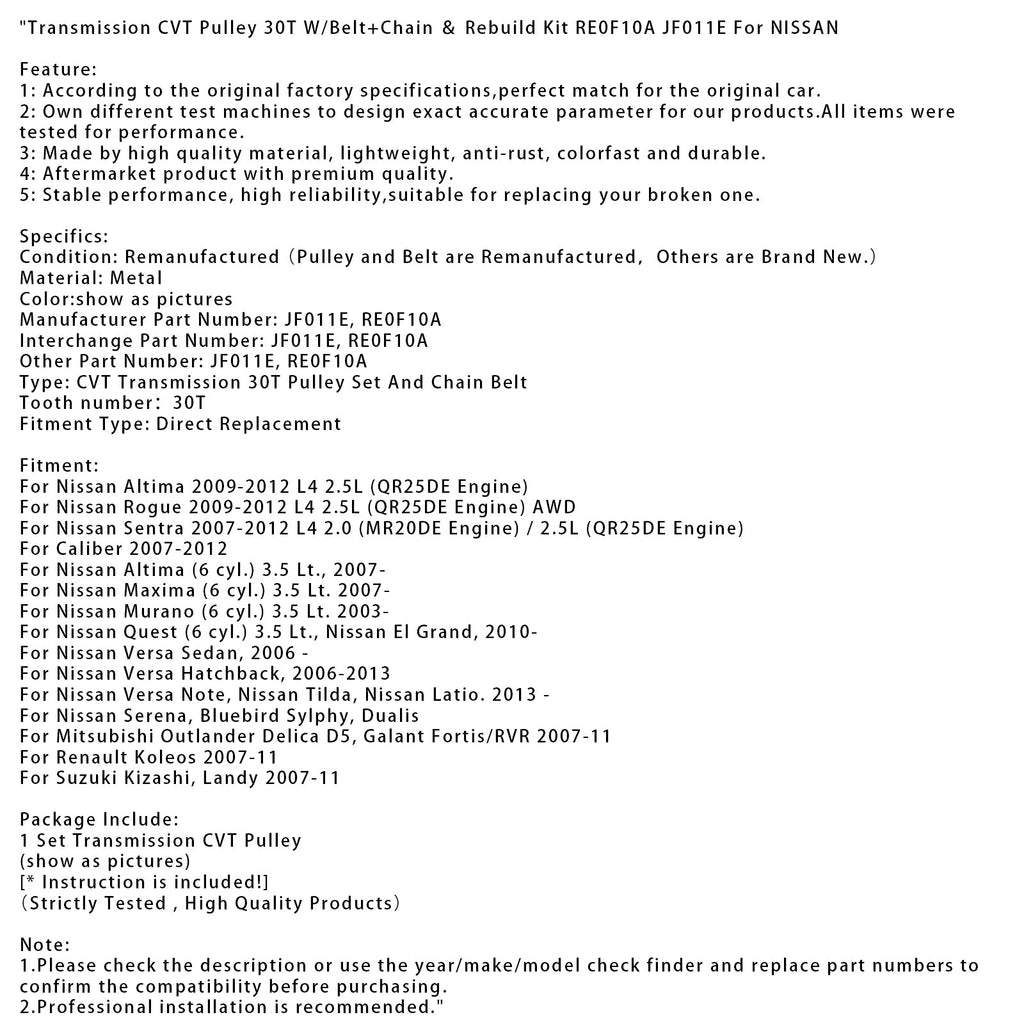 2009-2012 Nissan Altima L4 2,5L Getriebe CVT-Riemenscheibe 30T mit Riemen + Kette & Umbausatz RE0F10A JF011E