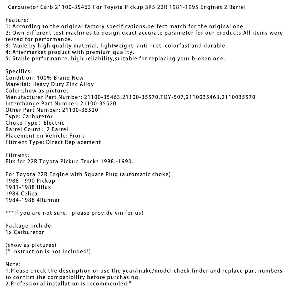 1984-1988 Toyota 22R wtyczka kwadratowa silnik 4 biegacz gaźnik Carb 21100-35463 21100-35570