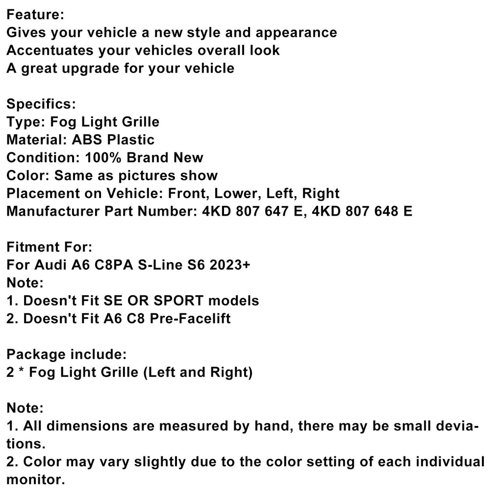2 STÜCKE Frontstoßstange Nebelscheinwerfer Kühlergrill Trim Fit Audi A6L C8PA 2023+ Schwarz Chrom