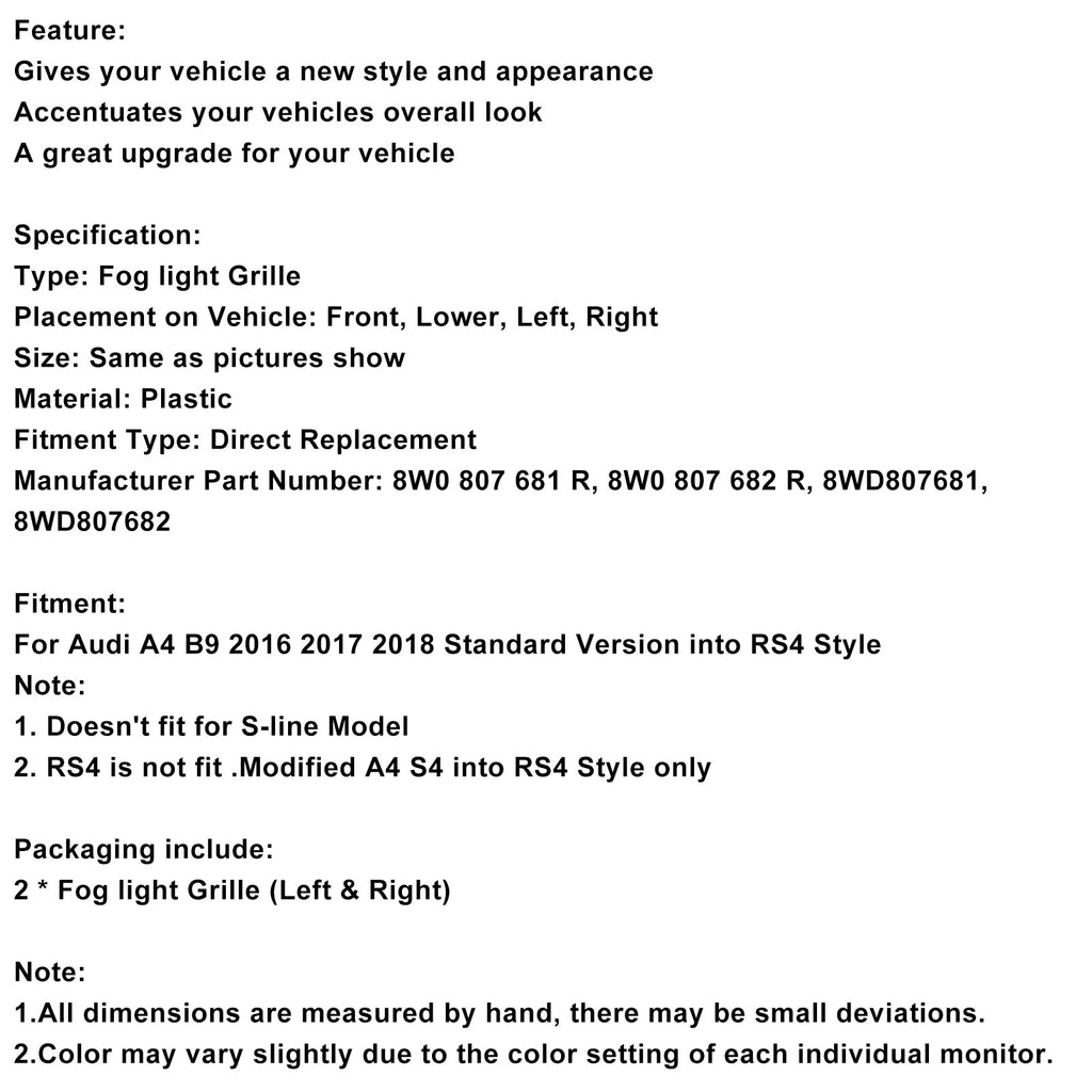 2 szt. Osłona przeciwmgielna dolna osłona zderzaka pasuje do AUDI A4 B9 2016-2018