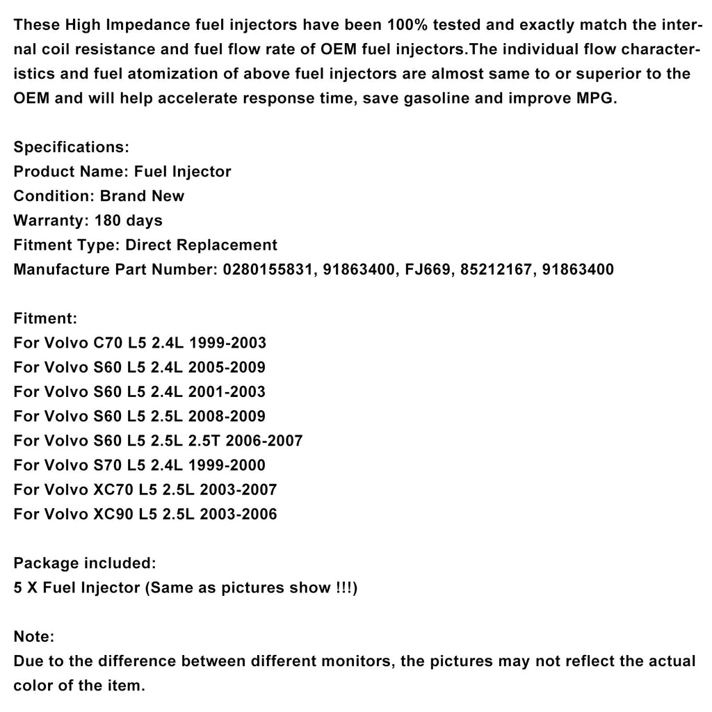 Te wtryskiwacze paliwa o wysokiej impedancji zostały w 100% przetestowane i dokładnie odpowiadają wewnętrznej rezystancji cewki i natężeniu przepływu paliwa wtryskiwaczy paliwa OEM. Poszczególne charakterystyki przepływu i rozpylania paliwa powyższych wtryskiwaczy są niemal takie same lub nawet lepsze od charakterystyki OEM i przyczyniają się do skrócenia czasu reakcji, oszczędności benzyny i poprawy ekonomii paliwowej.
