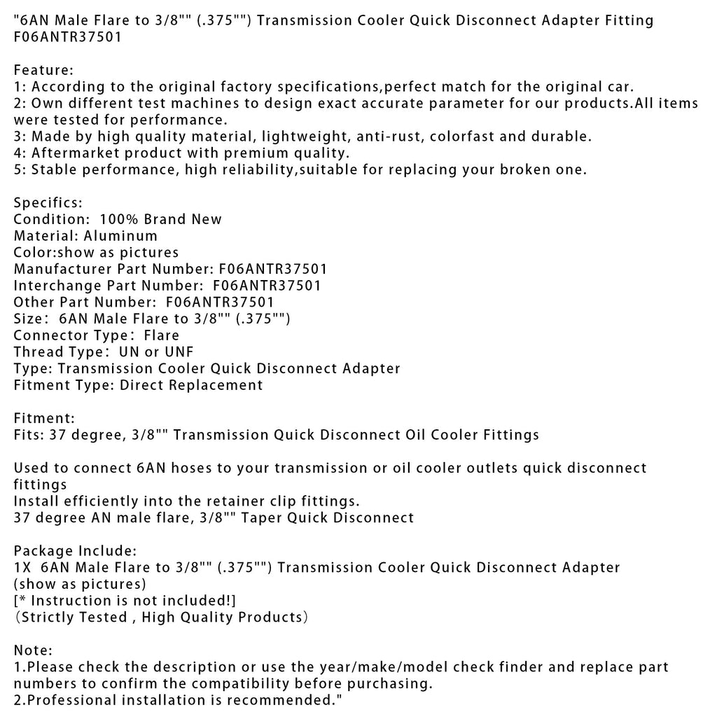 6AN Male Flare to 3/8" (.375") Transmission Cooler Quick Disconnect Adapter Fitting F06ANTR37501