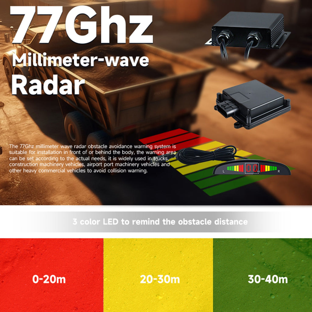 Ten System ostrzegania o przeszkodach wykorzystujący radar milimetrowy o częstotliwości 77 GHz został specjalnie opracowany w celu zwiększenia bezpieczeństwa podczas prowadzenia dużych pojazdów, takich jak betoniarka, ciężarówka górnicza, wywrotki i inne duże pojazdy użytkowe. System ten pozwala na wcześniejsze wykrywanie przeszkód i ostrzeganie kierowcy, zwiększając bezpieczeństwo na drodze i zmniejszając ryzyko kolizji.