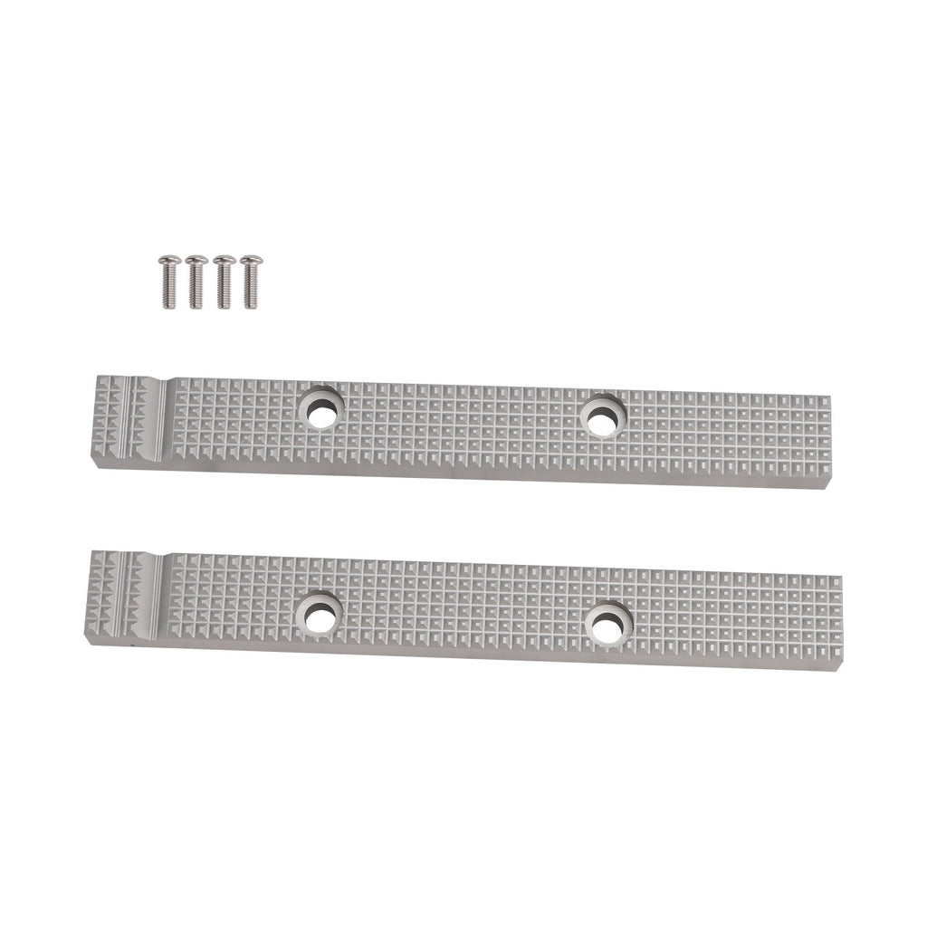 【Werkzeugmerkmale】 Die Backen verfügen über zwei Rillen auf einer Seite, sind umkehrbar und messen 6 1/2"" in der Breite, 3/4"" in der Höhe und 7/16"" in der Dicke, mit 2 1/2"" CC-Befestigungsschraubenlöchern. Erwarten Sie auf jeder Seite einen leichten Überhang.