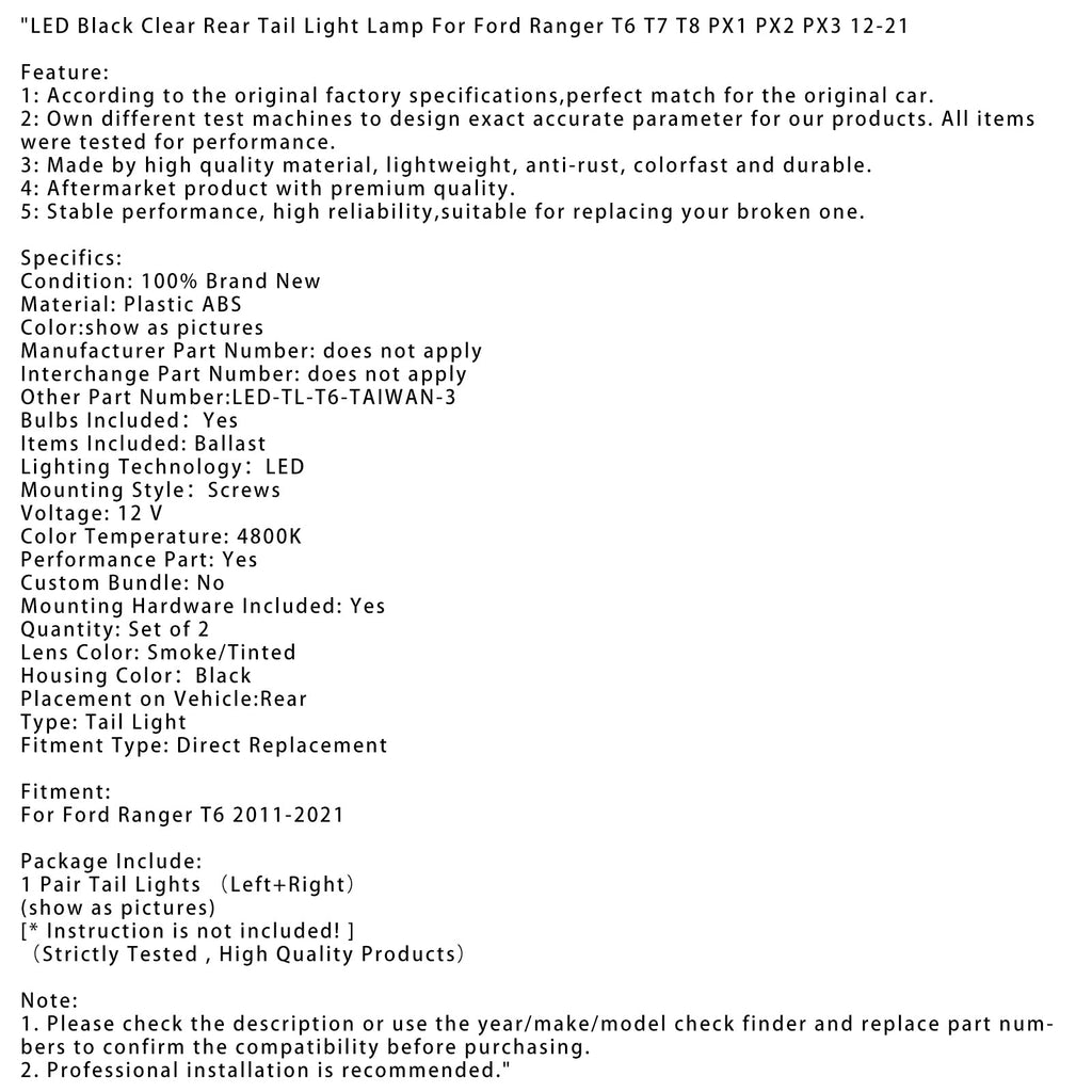Lampa tylna LED czarna przezroczysta do Ford Ranger T6 T7 T8 PX1 PX2 PX3 12-21