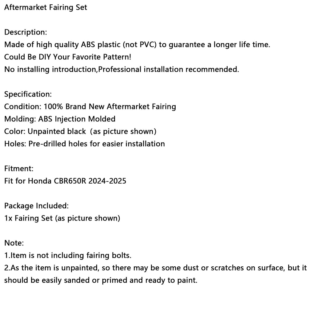 2024-2025 Honda CBR650R Karosserie Verkleidung Injection Unlackiert