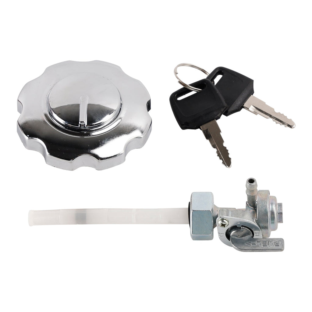 W zestawie chromowany korek wlewu paliwa z kluczykami i kranik do stosowania z przewodami paliwowymi o średnicy 3/16 cala.