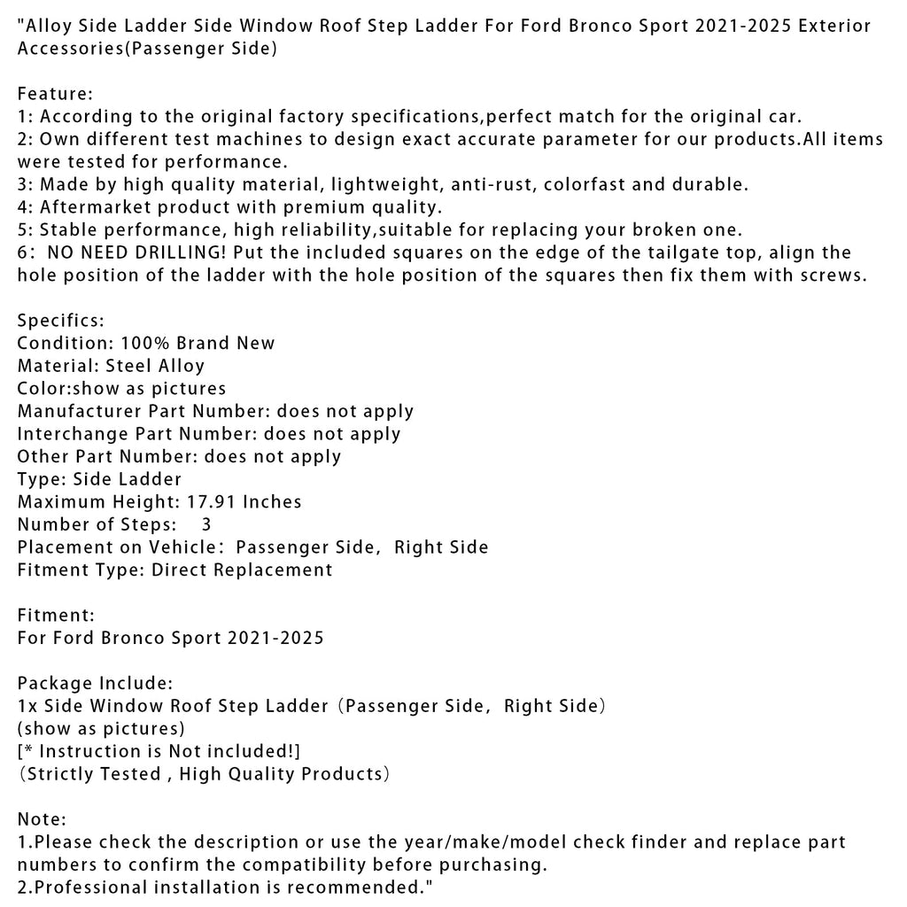 Seitenleiter aus Aluminiumlegierung, Dachtrittleiter für Ford Bronco Sport 2021-2025, Außenzubehör (Beifahrerseite)