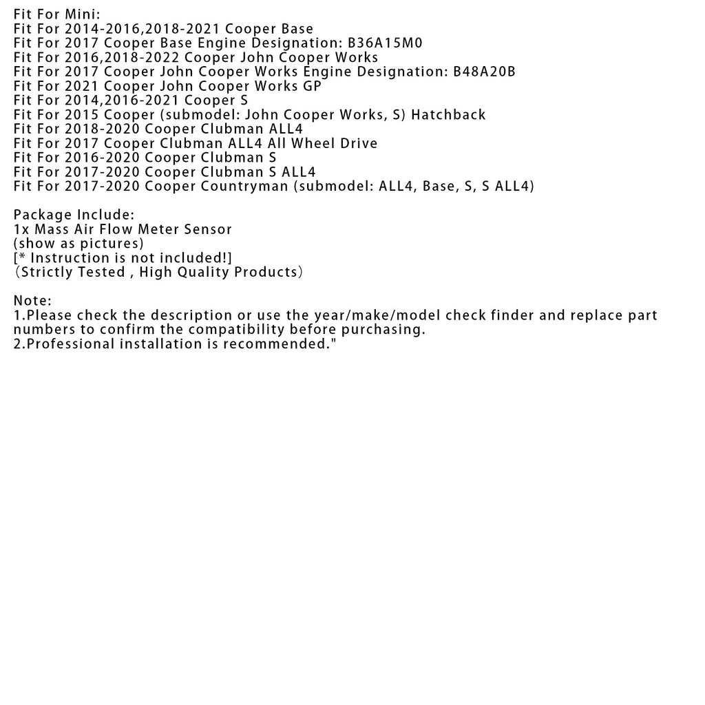 Fit For 2017 Cooper Base Engine Designation: B36A15M0