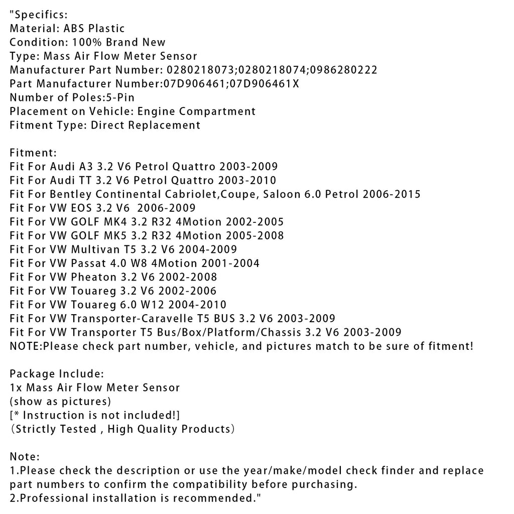 Mass Air Flow Meter Sensor For VW Golf MK5 Audi A3 TT 3.2 Bentley 0280218073