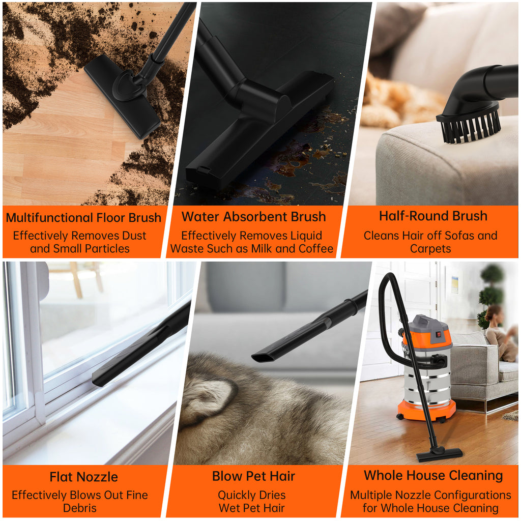 Hohe Saugleistung: Erreichen Sie beispiellose Reinigungsgeschwindigkeit mit unserem Edelstahlstaubsauger mit Saugkraft und 8 PS Spitzenleistung. Er bewältigt mühelos Staub, Schmutz, Tierhaare und sogar verschüttete Flüssigkeiten im Innenbereich.