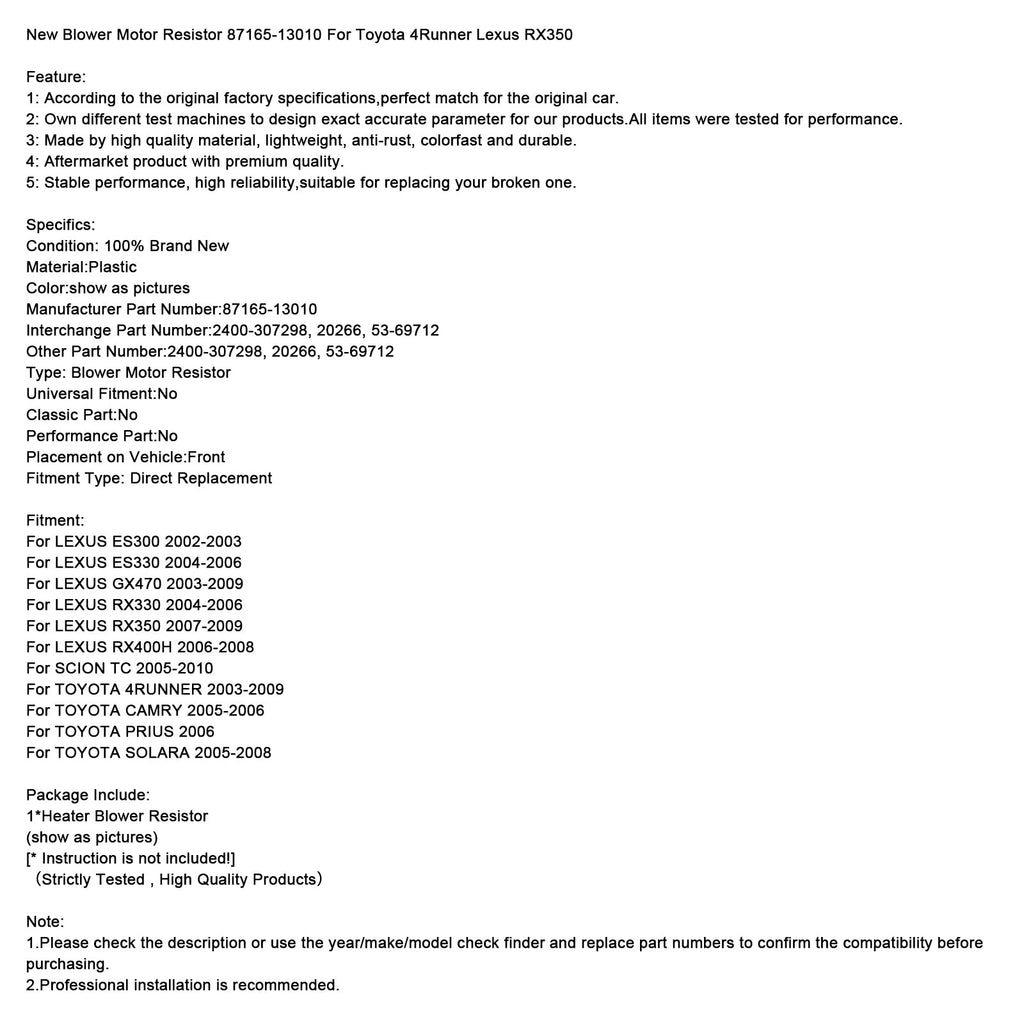 New Blower Motor Resistor 87165-13010 For Toyota 4Runner Lexus RX350