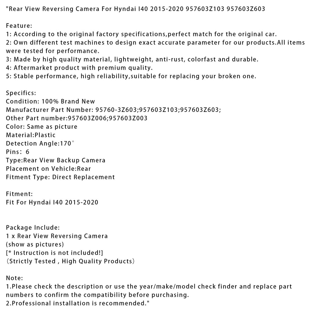 Rückansicht Rückfahr Kamera Für Hyndai I40 2015-2020 957603Z103 957603Z603