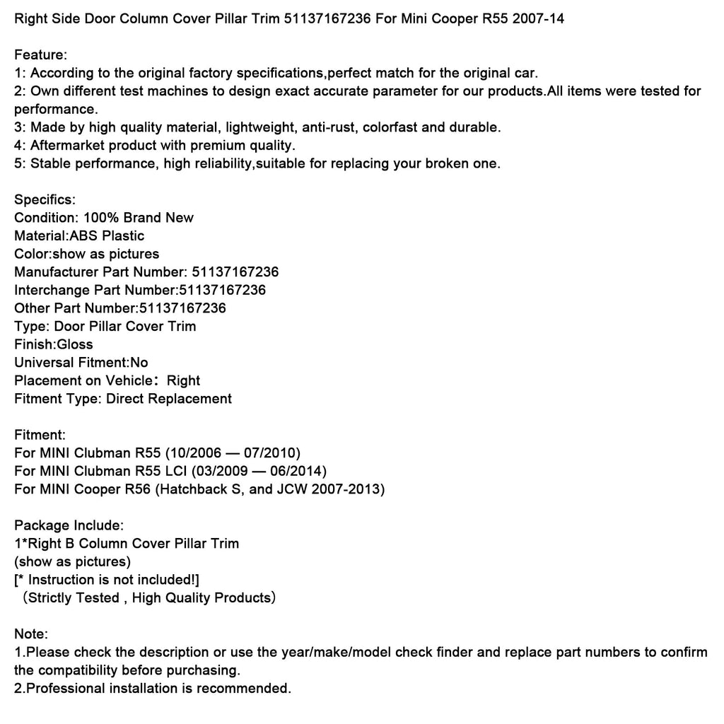 Rechte Seite Tür Spalte Abdeckung Säule Trim 51137167236 Für Mini Cooper R55 2007-14