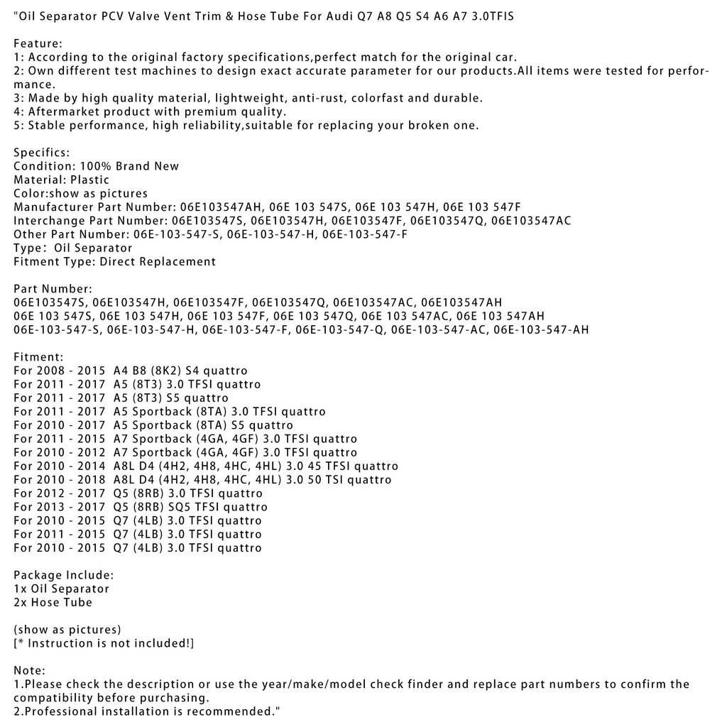 Separator oleju Zespół odpowietrzający zaworu PCV i wąż odpowiednie do Audi Q7 A8 Q5 S4 A6 A7 3.0TFIS