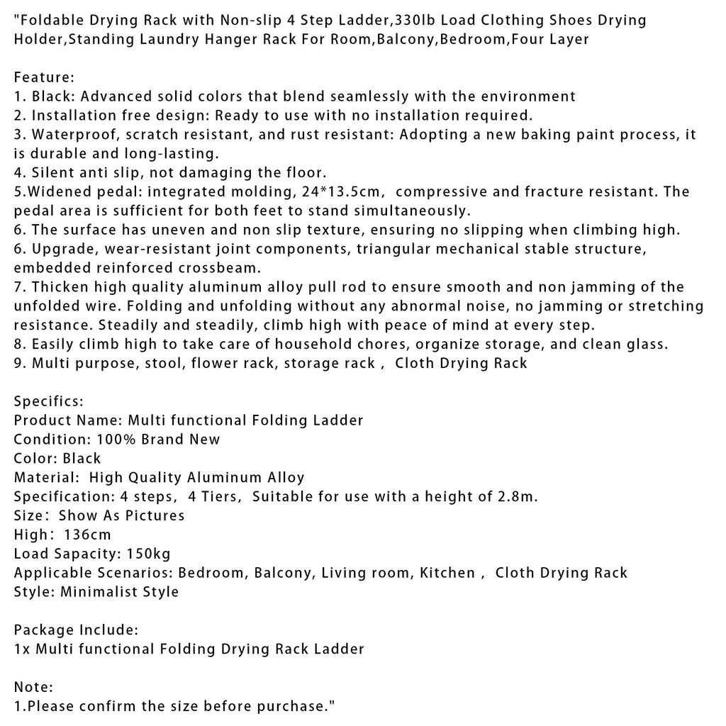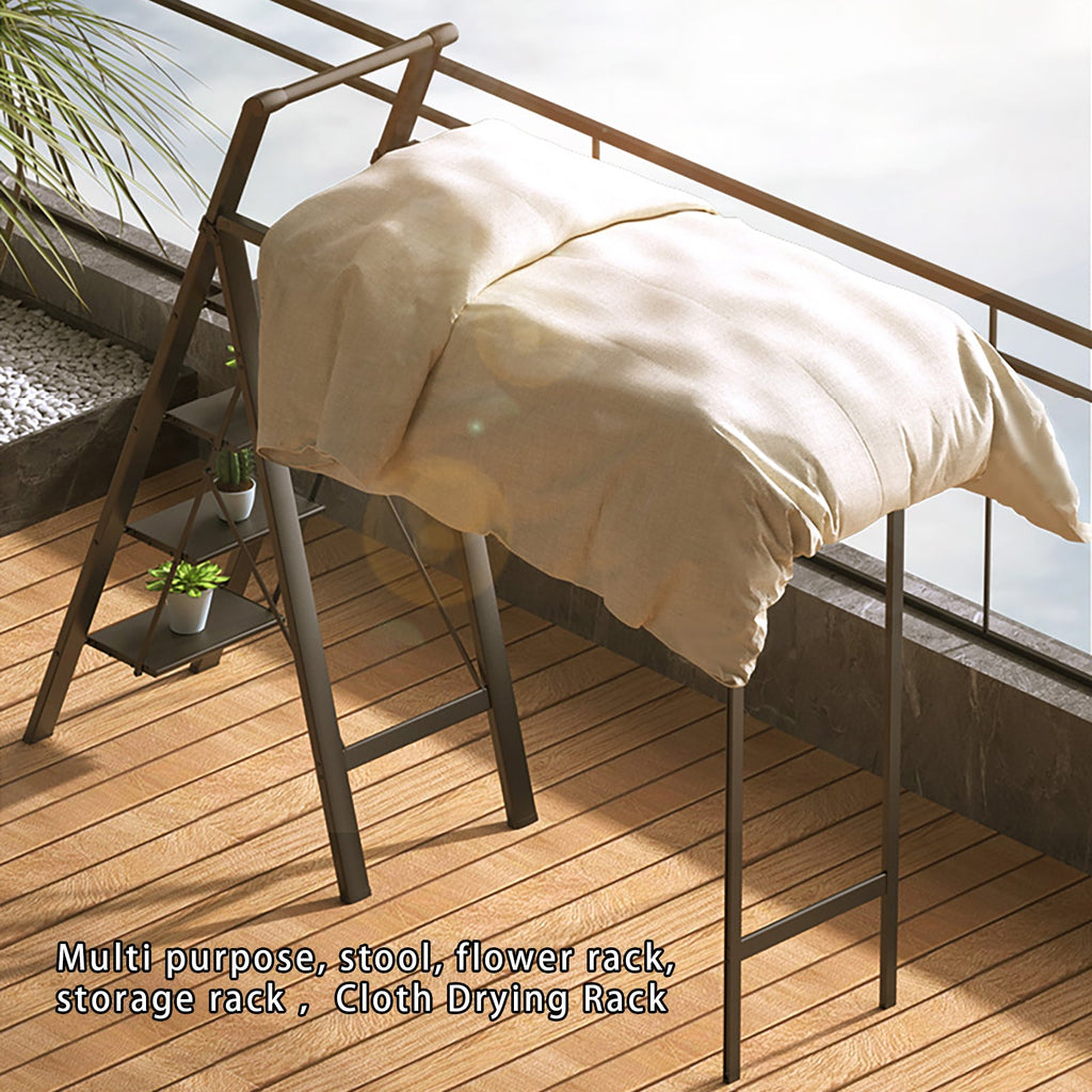 Składany wieszak na ubrania z antypoślizgową 4-stopniową drabinką, nośność 150 kg, wieszak na ubrania do suszenia butów, stojący wieszak na ubrania do pokoju, balkonu, sypialni, czteropoziomowy