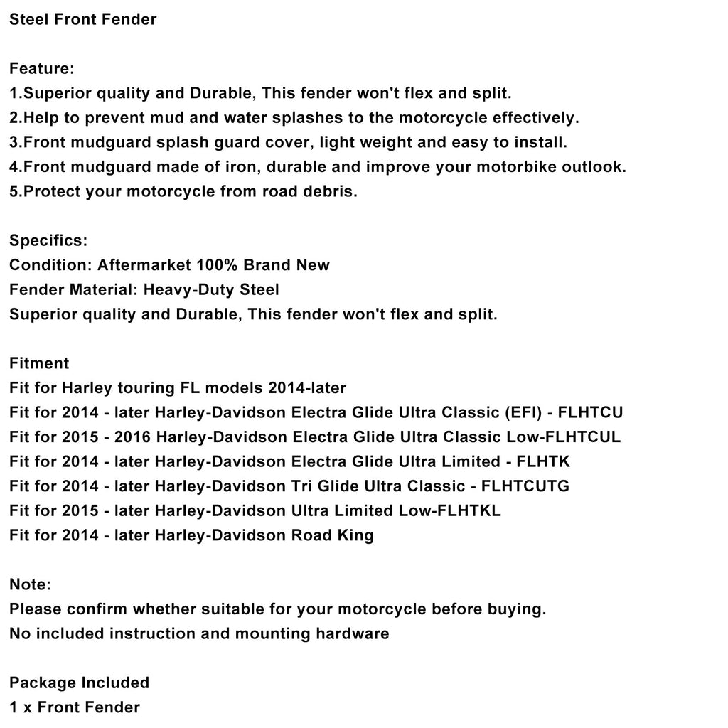 Steel Front Fender Mudguard Fit For Touring Electra Glide Ultra Limited 2014-2024