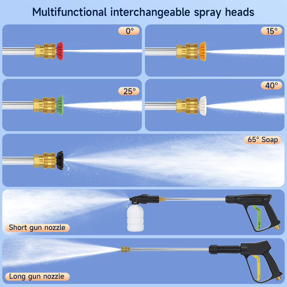 Die Reinigungsmaschine ist mit zwei Spritzpistolen ausgestattet, mit denen die Wassermenge nach Belieben eingestellt werden kann (üblicherweise für die Autowäsche verwendet), und eine Spritzpistole kann mit verschiedenen Düsentypen ausgestattet werden. Kurz gesagt: Kaufen Sie unsere Produkte, um alle Ihre Reinigungsanforderungen zu erfüllen