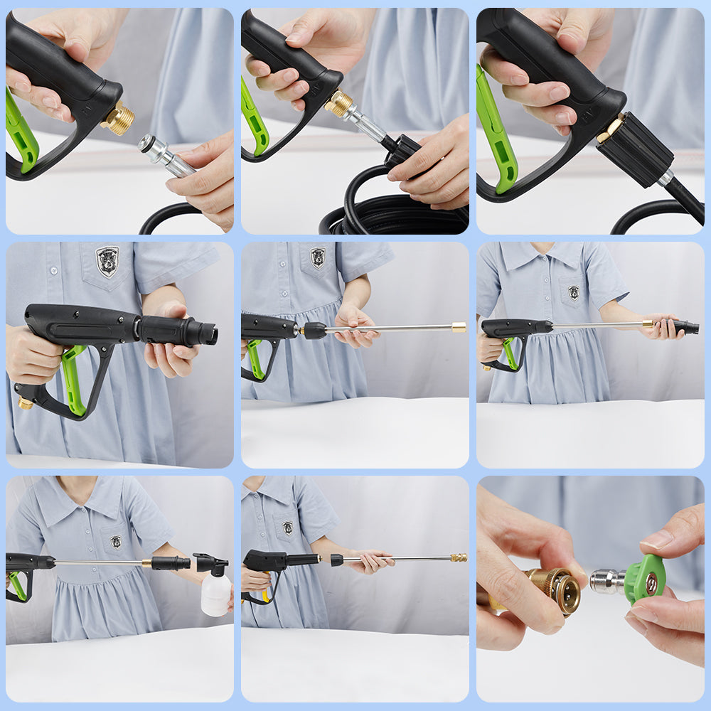 【Total Stop System】:Genießen Sie den Komfort unseres Total Stop Systems, das die Pumpe automatisch abschaltet, wenn der Auslöser losgelassen wird. Diese Funktion erhöht nicht nur die Sicherheit, sondern verlängert auch die Lebensdauer Ihres Hochdruckreinigers.