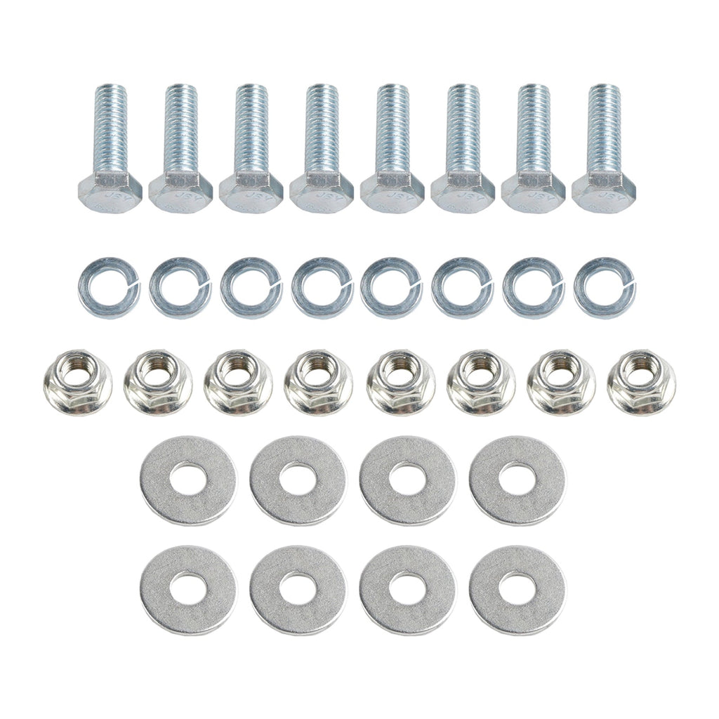 Zestaw zawieszenia montowany jest pomiędzy siedziskiem a szynami ślizgowymi. Jeśli Twoja kosiarka nie jest wyposażona w płozy, będziesz musiał zamontować podkładki dystansowe 1/2""-3/4" i ewentualnie dłuższe śruby, aby zawieszenie działało.