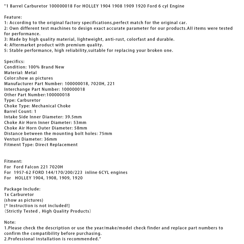 1 Barrel Vergaser 100000018 Für HOLLEY 1904 1908 1909 1920 Ford 6 Zyl. Motor
