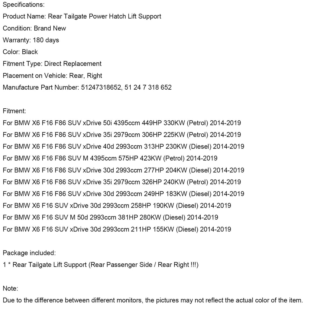 Elektrischer Heckklappen-Hebemechanismus hinten rechts 51247318652 Passend für BMW X6 F16 F86 2014-2019