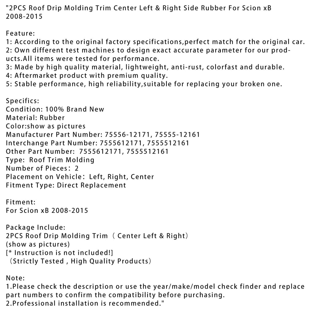 2008-2015 Scion xB 2PCS Dach Tropfleiste Trim Mitte links und rechts Seite Gummi