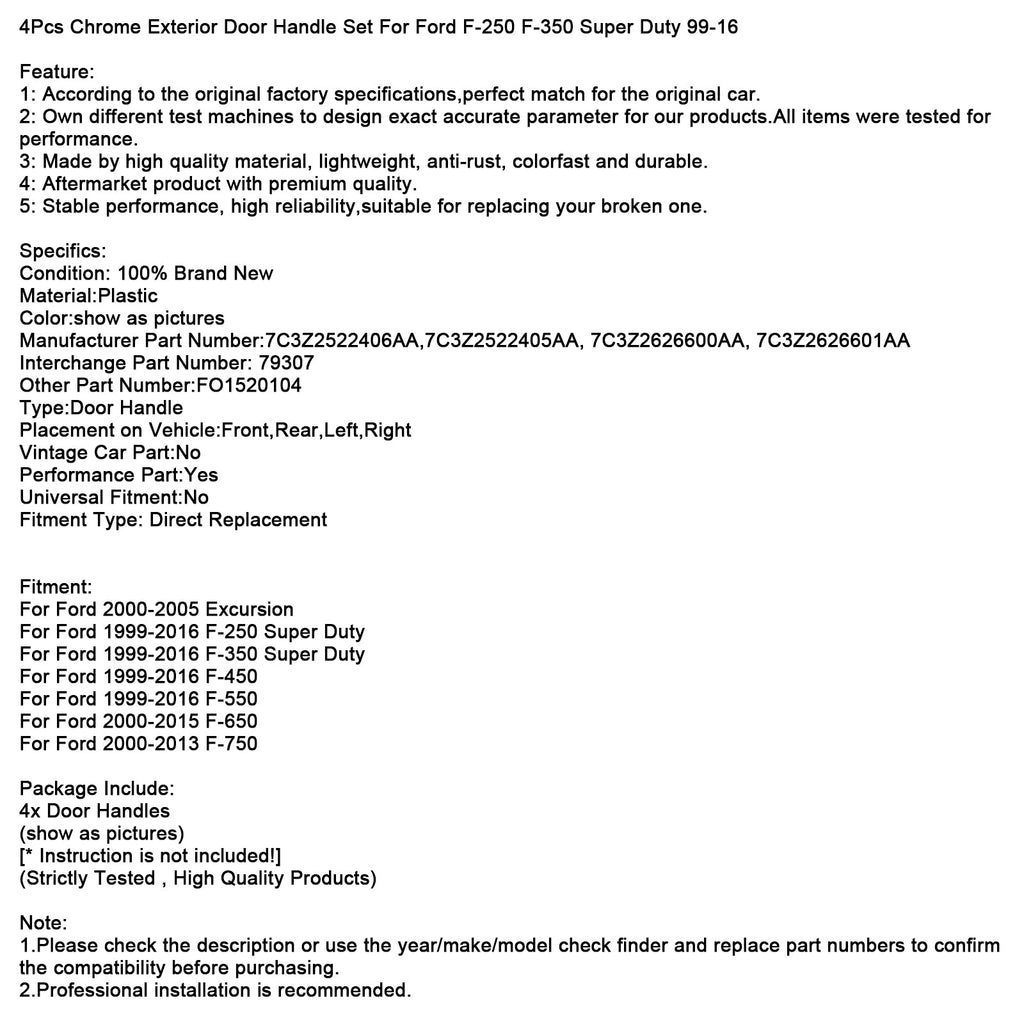 4-teiliges Set verchromter Außentürgriffe passend für Ford F-250 F-350 Super Duty 1999-2016
