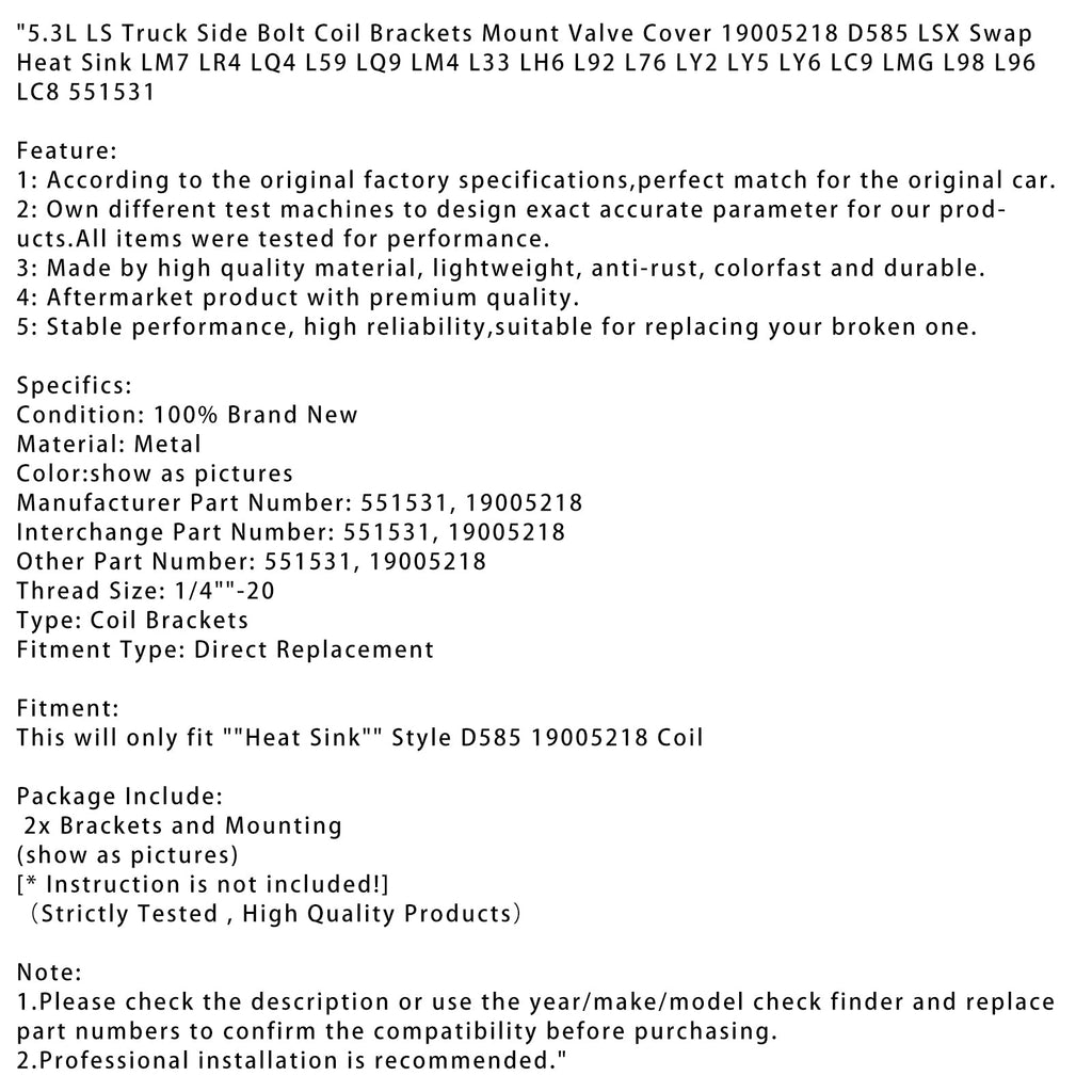 5.3L LS Truck Seitenbolzen Spulenhalterungen Ventildeckel montieren 19005218 D585 LSX Swap Kühlkörper LM7 LR4 LQ4 L59 LQ9 LM4 L33 LH6 L92 L76 LY2 LY5 LY6 LC9 LMG L98 L96 LC8 551531